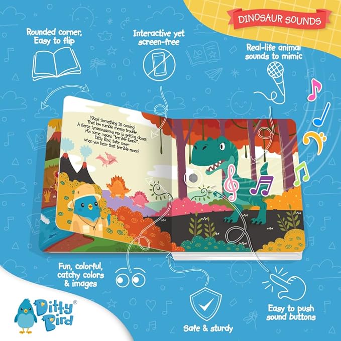 - 🦖Time to rawr Dino lovers: Let your kids enjoy listening & learning about Dinos with this Ditty Bird books with sound featuring 6 different dinosaurs & the sounds they make! Whether your little boy or girl is a Triceratops, Stegosaurus, T-Rex, Brontosaurus, Velociraptor fan, they'll surely love these toddler books!