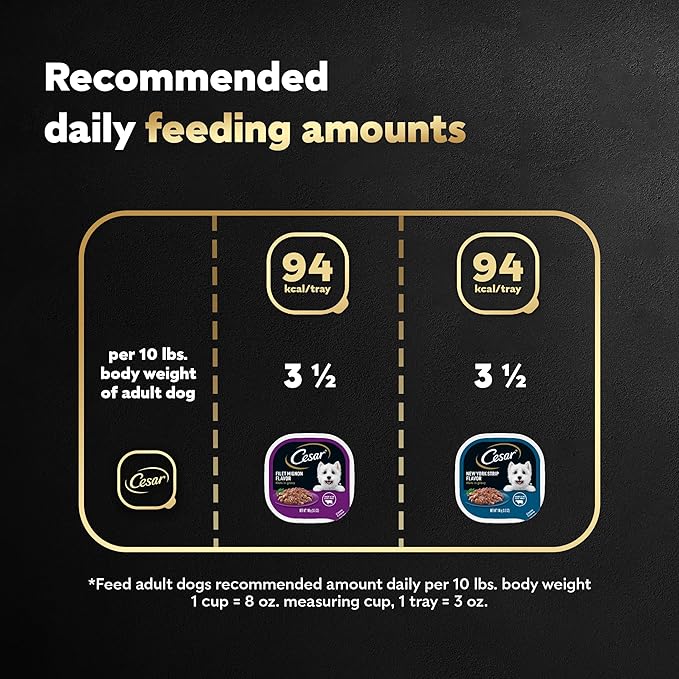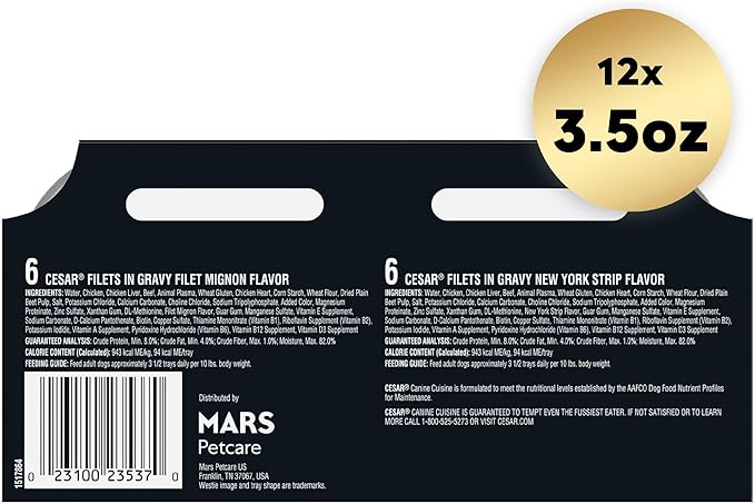 Cesar Filets in Gravy Adult Wet Dog Food, Filet Mignon and New York Strip Flavors Variety Pack, 3.5 oz. (12 Count, Pack of 1)
