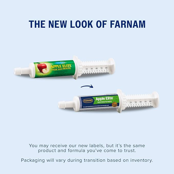 Farnam Apple Elite Electrolyte Paste Supplement for Horses, Replaces Vital Minerals, Encourages Hydration, No Added Sugar, 60 cc syringe