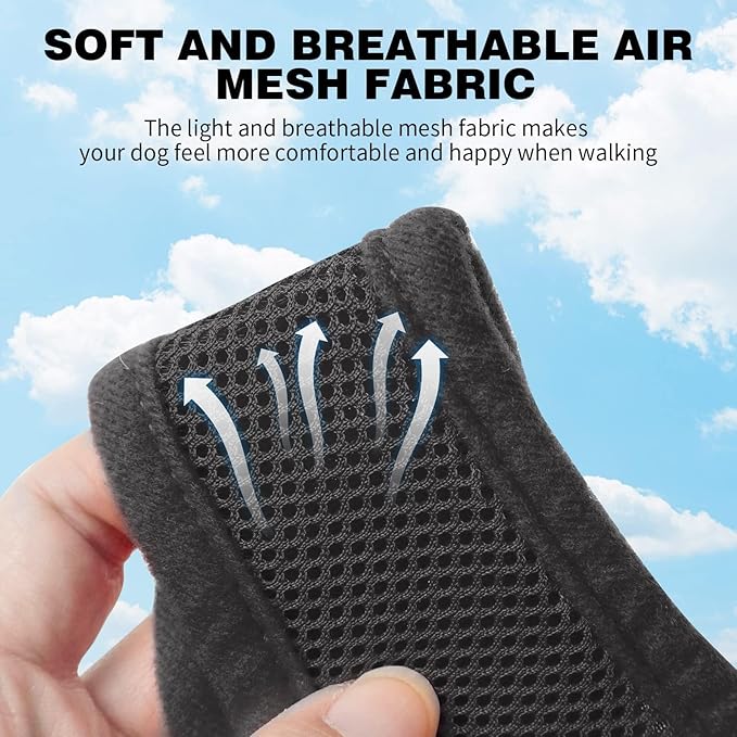 - 🐶[DURABLE & COMFORTABLE]: The dog harness vest are made of breathable air mesh fabric and padded with soft material to protect your pet's skin, which is durable and cozy. Our dog vest is suitable for any season wearing.