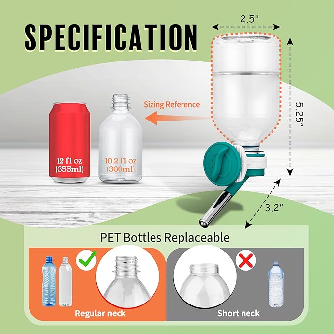 - 🐾 Mini-Sized Nozzle (10mm) is recommended for Guinea Pig, Ferret, Hamster, Bunny. / Made of BPA Free Material/ 10.2 oz Capacity.