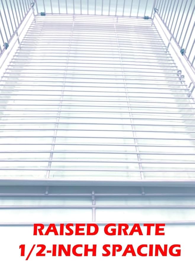 - 【Easy Access】Side access door allows bird to walk right into cage. 【Raised Grate】Easy Removable 【Pull Out Bottom Tray】Easy Removable and Washable