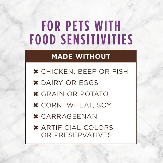 - GRAIN FREE CAT FOOD FOR CATS WITH SENSITIVITIES: Instinct Limited Ingredient cat food is made with 1 protein & 1 vegetable. Wet cat food with no grain, dairy, eggs, chicken, beef, fish, corn, wheat, soy, carrageenan, artificial colors or preservatives.