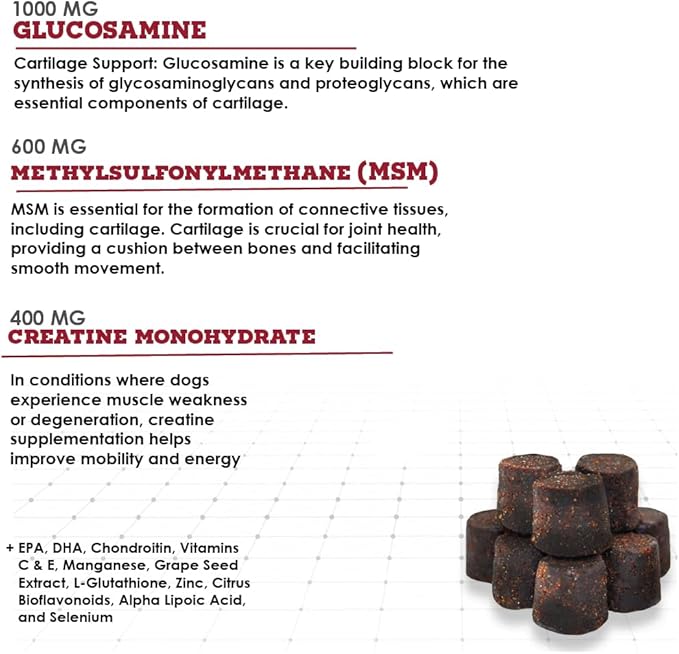 - Triple Strength Formula: Joint MAX Triple Strength Soft Chews are formulated with a powerful combination of ingredients, including glucosamine, chondroitin, and MSM (Methylsulfonylmethane). These ingredients work synergistically to provide maximum joint support and promote overall joint health.