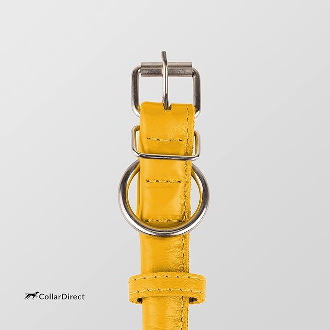 CollarDirect Rolled Leather Dog Collar, Soft Padded Round Puppy Collar, Handmade Genuine Leather Collar Dog Small Large Cat Collars 13 Colors (15-19 Inch, Yellow Textured)
