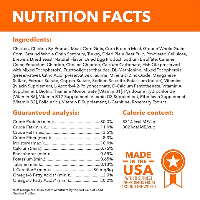 - Complete and Balanced for Adult Cats: 100% nutrition, 0% fillers, this dry cat food supports whole-body health with essential nutrients and is enriched with antioxidants for a strong immune system