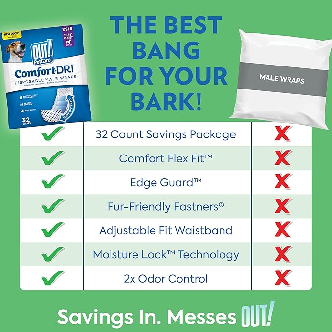 - OUT!: We’re dedicated to providing pet parents with safe, affordable puppy essentials that work: With the best potty training diapers and pet care solutions, OUT! delivers value and reliability; keep loving your pets, and we’ll be there when you need us!