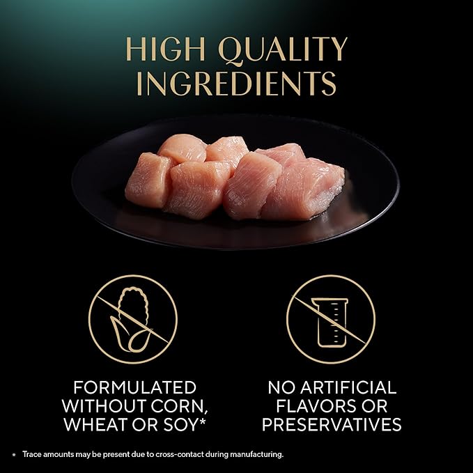 - Delicious Recipe: Sheba Perfect Portions Wet Cat Food Cuts in Gravy is formulated without grains, corn, or soy and contains no artificial flavors or preservatives; although trace amounts may be present due to cross-contact during manufacturing