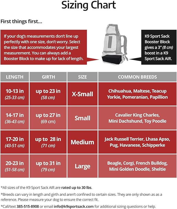 - FIND THE RIGHT SIZE - The Medium is best for dogs with a length of 17-19” from collar to the base of the tail and a girth up to 28”. Typical dog breeds that will fit this size backpack include Beagle, Corgi, French Bulldog, Shiba Inu & Terrier.