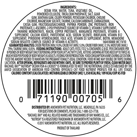 Rachael Ray Nutrish Natural Wet Cat Food, Ocean Fish-A-Licious Recipe, 2.8 Ounce Cup (Pack of 12), Grain Free (6303330281)