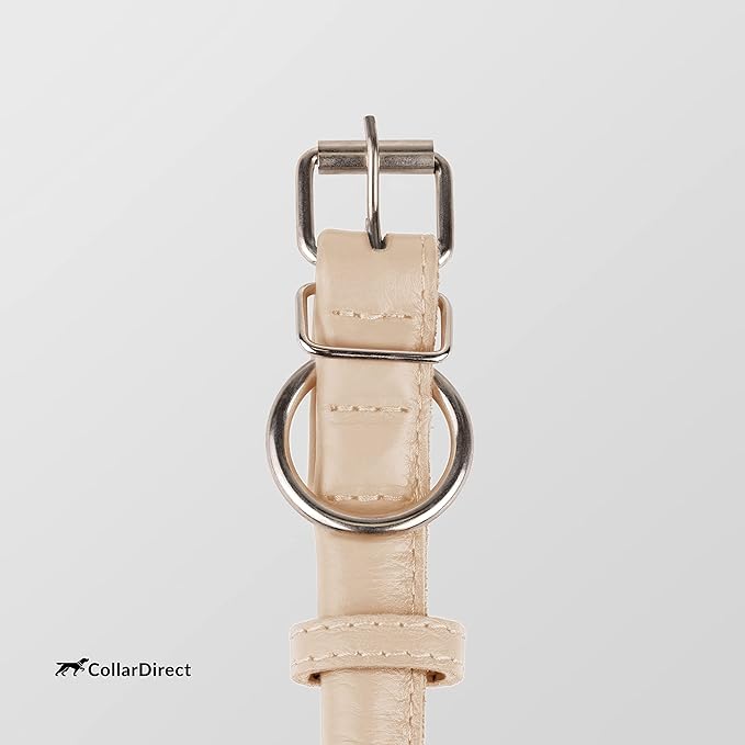 CollarDirect Rolled Leather Dog Collar, Soft Padded Round Puppy Collar, Handmade Genuine Leather Collar Dog Small Large Cat Collars 13 Colors (13-16 Inch, Beige Textured)
