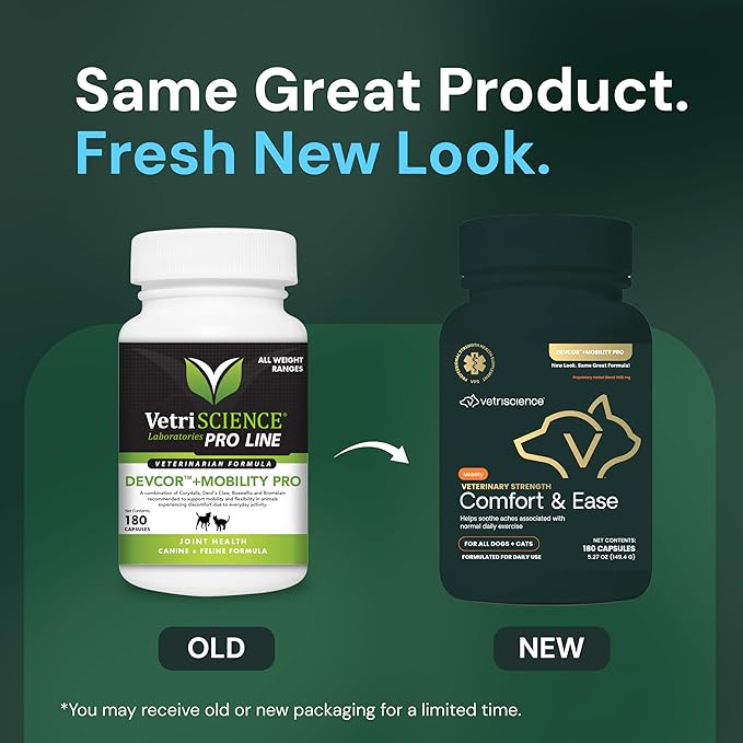 VETRISCIENCE Veterinary Strength Comfort & Ease Capsules - Mobility Supplement for Pets - Supports Aches from Normal Exercise - Joint Care for Dogs & Cats - 180 Count