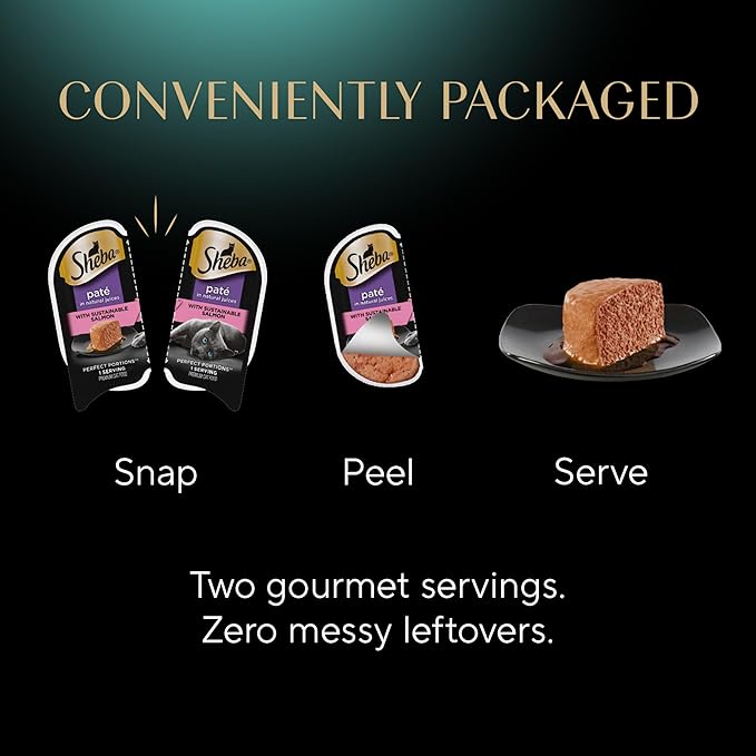 - A Fresh Meal With Every Peel: Just snap, peel, and serve Sheba Perfect Portions Wet Cat Food