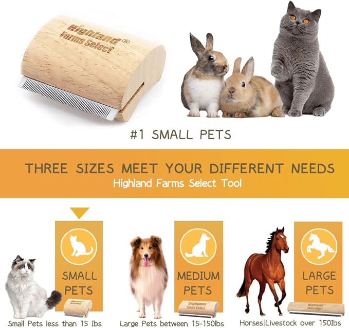 Deshedding Grooming Tool for Dogs, Cats & Horses, Ergonomic Design Wood Groom Brush, Professional Pet Groomer, Painlessly Remove for Short & Long Hair, Fur & Dirt - 2.5 Inches