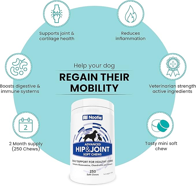 Nootie Glucosamine for Dogs - 250 ct - Hip and Joint Soft Chews Supplement for Dogs - Daily Dog MSM Chondroitin Chews with Turmeric - Joint Care Vitamins for All Breeds and Sizes USA