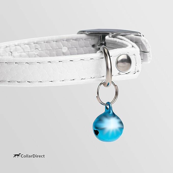 CollarDirect Leather Cat Collar, Kitten Collar with Removable Bell Black Blue Red Orange Lime Green (6-7 Inch, White)
