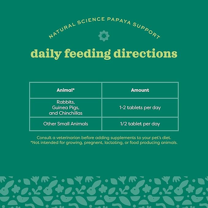 - PREMIUM INGREDIENTS: This high-fiber supplement is formulated with papaya and pineapple (natural sources of active enzymes) and high fiber Timothy hay to promote the digestive health of your small pet.
