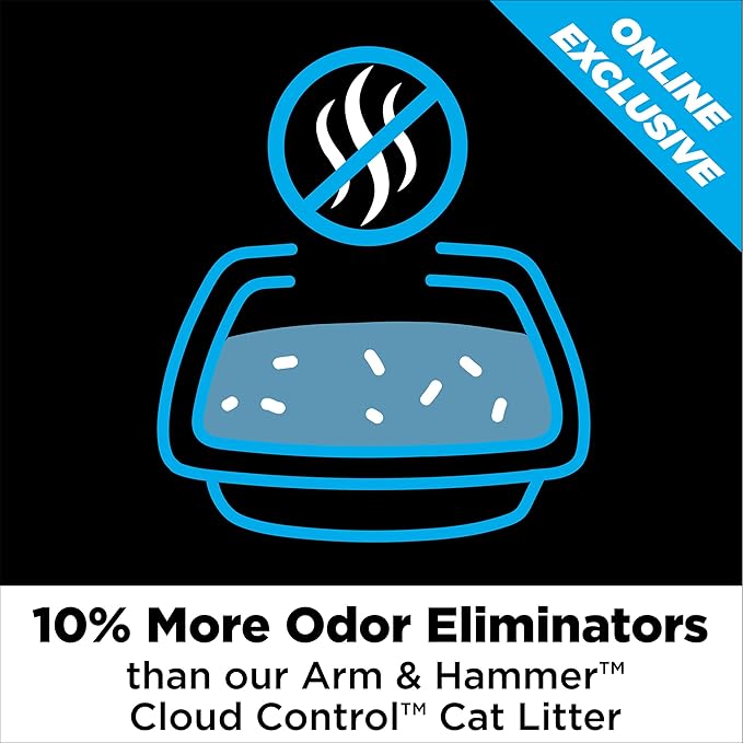 - 10% MORE ODOR ELIMINATORS than our regular ARM & HAMMER Cloud Control cat litter, this clumping litter eliminates urine and feces odor on contact. Its light scent refreshes every time your cat uses the kitty litter box for easy odor control