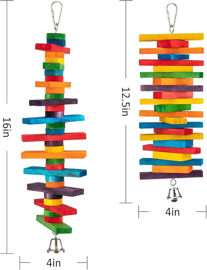 MEWTOGO 2 Pcs Bird Toys - Parrot Toys with Multicolored Natural Wooden Blocks, Chewing Sticks for Conures, Parakeets, Cockatiels, Lovebirds, African Grey, Macaws, Amazon Parrots - Bird Gift