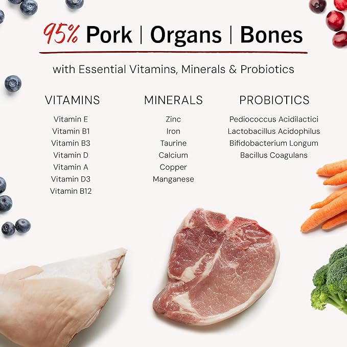 - 95% FARM-RAISED PORK & ORGANS -- Premium freeze-dried raw nutrition with whole-prey approach delivers muscle-building protein, enhanced digestibility, and natural nutrients that support coat, skin, and overall health.