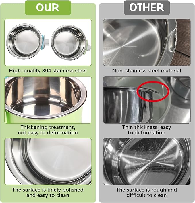 - EASY TO CLEAN: Removable hanging stainless steel dog bowl is removable for easy clean up, fill up or remove. No longer worry about the cage and getting dirty. Just take out of bowl, it by running water, then put cleaned back to cage