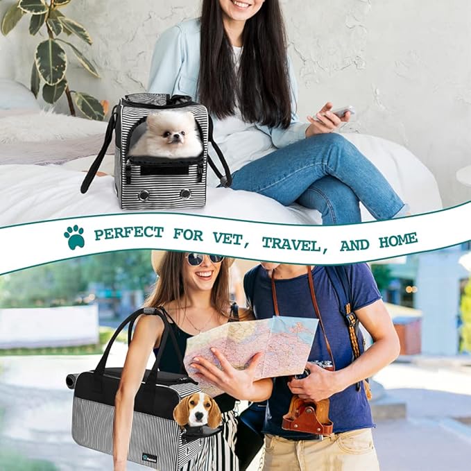 PetAmi Dog Purse Carrier for Small Dogs, Airline Approved Soft Sided Pet Carrier with Pockets, Ventilated Dog Carrying Bag for Puppy Cat, Dog Travel Supplies Bag, Sherpa Bed, Max 12 lbs, Stripe Black