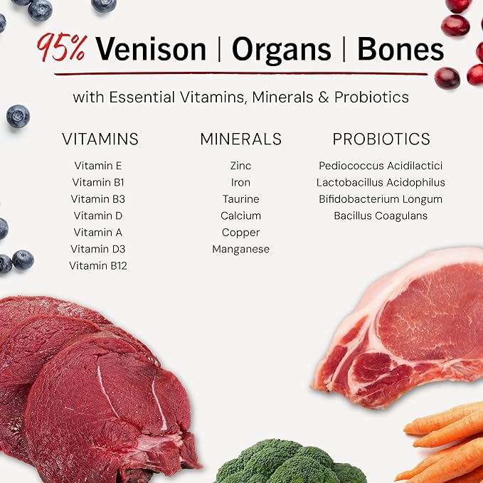- 85% VENISON & ORGANS -- Premium freeze-dried raw nutrition with whole-prey approach delivers muscle-building protein, enhanced digestibility, and natural nutrients that support coat, skin, and overall health