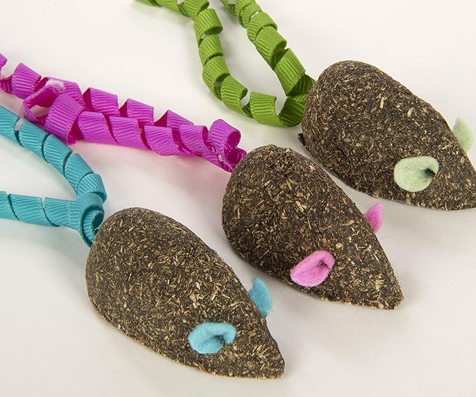 SmartyKat (3 Count) Magic Mice Compressed Catnip Ribbon Cat Toys - Green/Pink/Blue, 3 Count