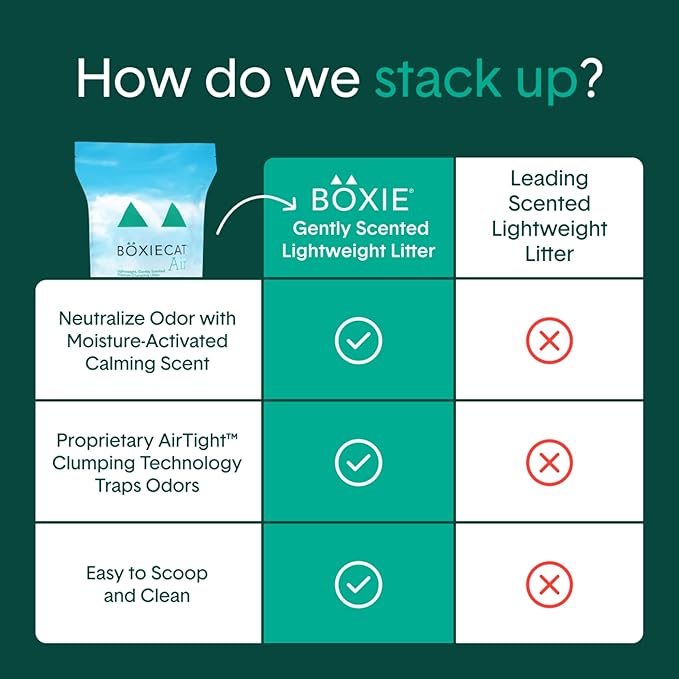 - MADE TO LAST: Boxie litter products last between 30-40 days (2x longer than other litters), making it the highest quality, longest lasting litter on the market. You only need to replace it once a month.