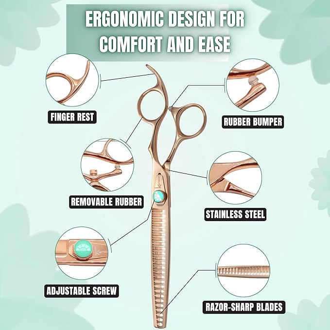 Kenchii Rose Dog Grooming Scissors, 25 Tooth Blending Shears, Dog Scissors for Grooming, Ergonomic Design for Comfort and Precision, Heavy Duty, Durable and Sharp