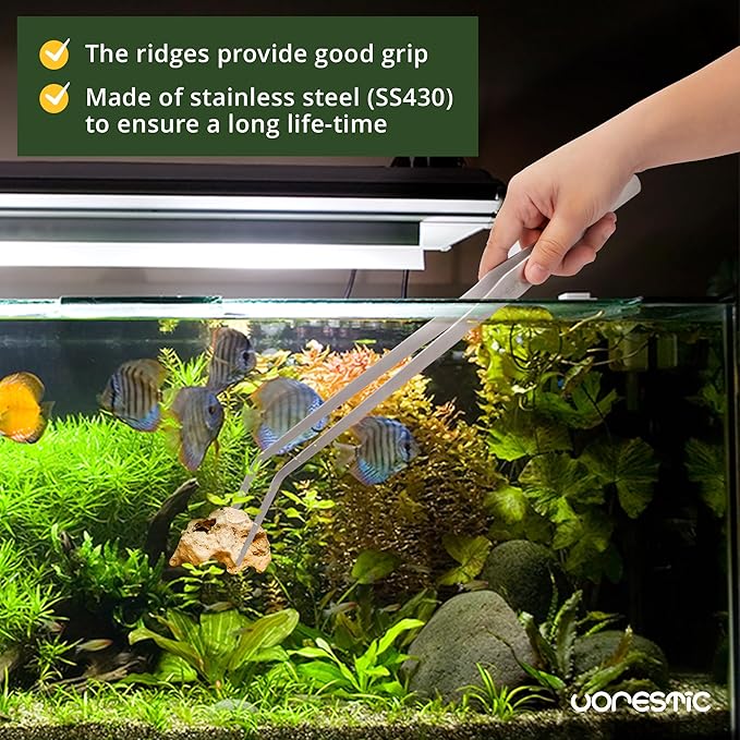 - 2 Pcs Curved and Straight Long Tweezers Set - it comes with two 15 inches extra long tweezers essential for adding aquarium or terrarium plants, remove dead and redundant aquatic plants, move aquarium decorations, and feed fish, reptiles and insects