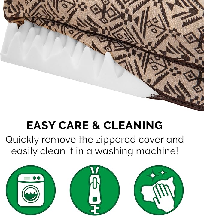Furhaven Orthopedic Dog Bed for Large/Medium Dogs w/ Removable Bolsters & Washable Cover, For Dogs Up to 55 lbs - Plush & Southwest Kilim Woven Decor Sofa - Desert Brown, Large