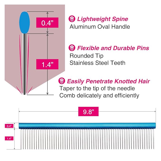- 【 Rounded Steel Teeth 】 Unlike sharp-edged combs, our comb features perfectly polished round tips on every pin — gently protecting your pet’s skin while providing a soothing, comfortable grooming experience that promotes healthier fur and happier pets.