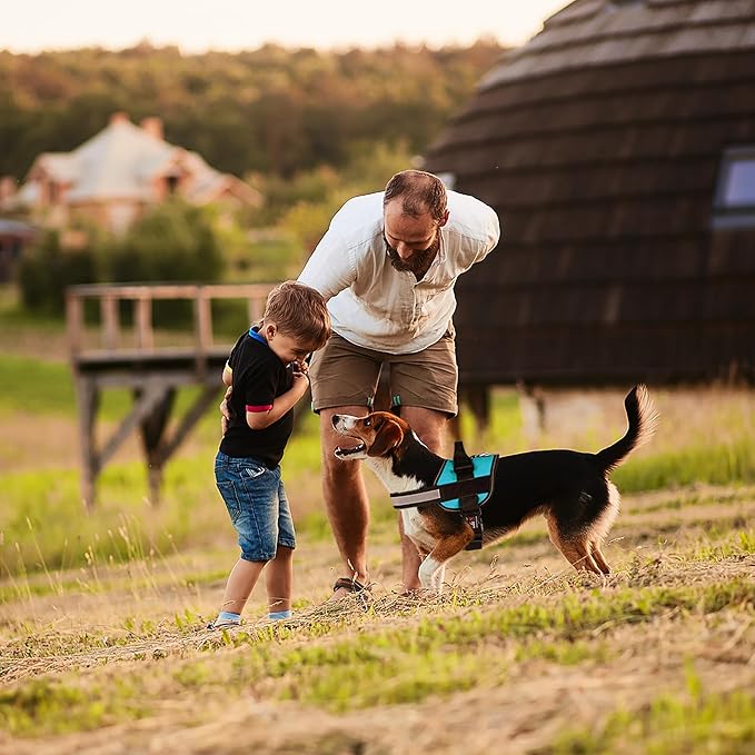 Dogline Dog Harness, Reflective No-Pull Adjustable Vest with Handle for Walking, Training, Breathable, No - Choke Harness for Small, Medium or Large Dogs Room for Patches Girth 22"-28" in Turquoise