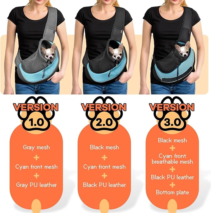 YUDODO Pet Sling Carrier for Small Dogs & Cats – Hands-Free Puppy Carrier with Safety Hook, Large Zipper Pocket, Soft Breathable Mesh, Adjustable Strap & Reflective Strip (Cyan 1.0 S)