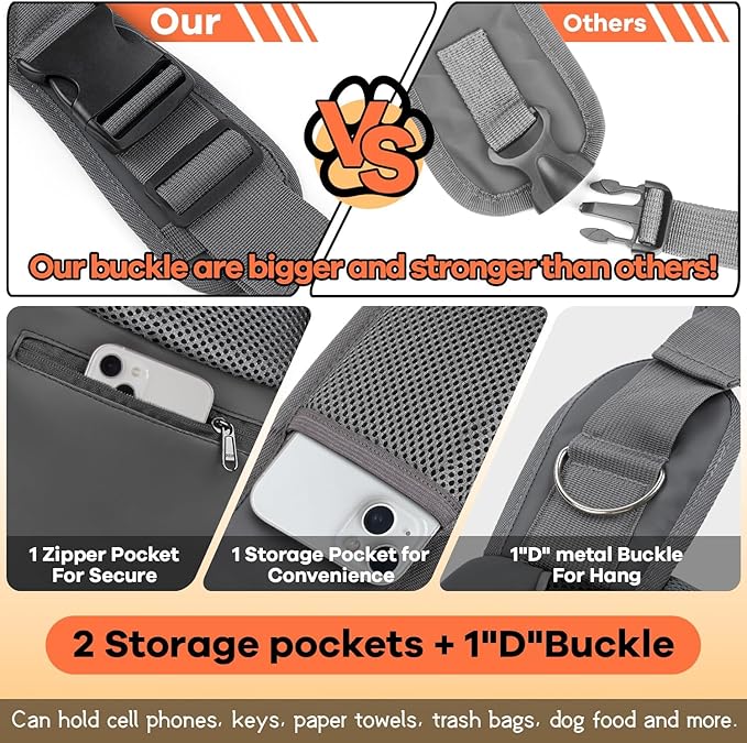 - Safety Comes First: 1. A safety buckle design secures your pet's collar to prevent escapes. 2. Anti-slip zipper design adds security. 3. Reflective stripes enhance visibility and safety during nighttime walks.