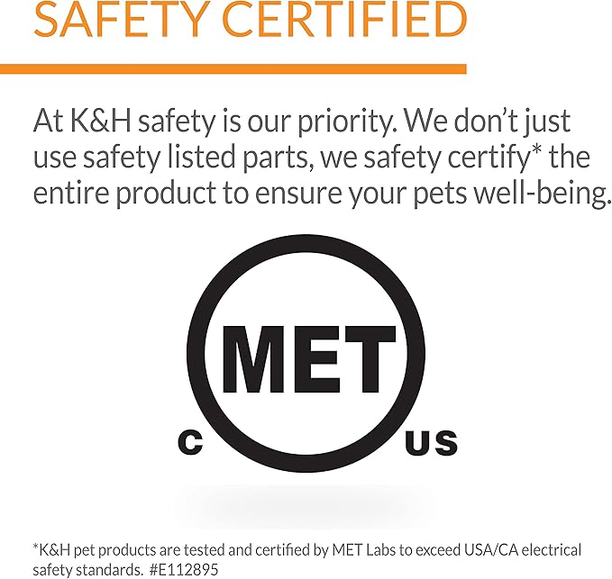 - SAFETY: Electric cat bed has been tested & certified by MET Labs and exceeds USA/CA electrical safety standards; K&H doesn't just use safety listed parts, we safety certify the entire product - For indoor household use with 110/120 volt electrical current only