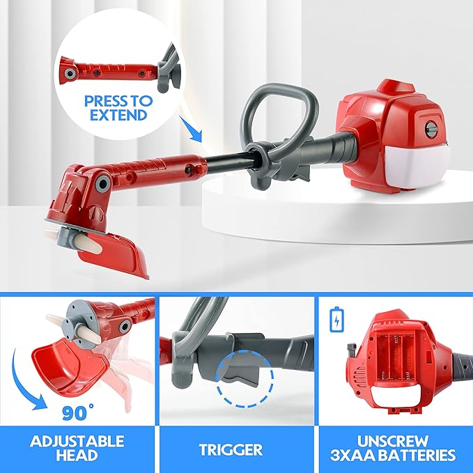 - ๐๐บ๐ฝ๐ผ๐ฟ๐๐ฎ๐ป๐ ๐๐๐ป๐ฐ๐๐ถ๐ผ๐ป: The graden toy trimmerโs head rotates 90 degrees and has telescopic buttons to extend its working range, providing hours of safe and fun imaginative play