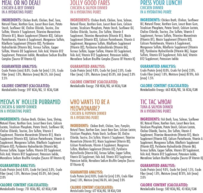 - The Mix and Match Game Variety Pack. Pick a new pate, everyday. Includes all six Weruva canned pate cat food recipes, three of each