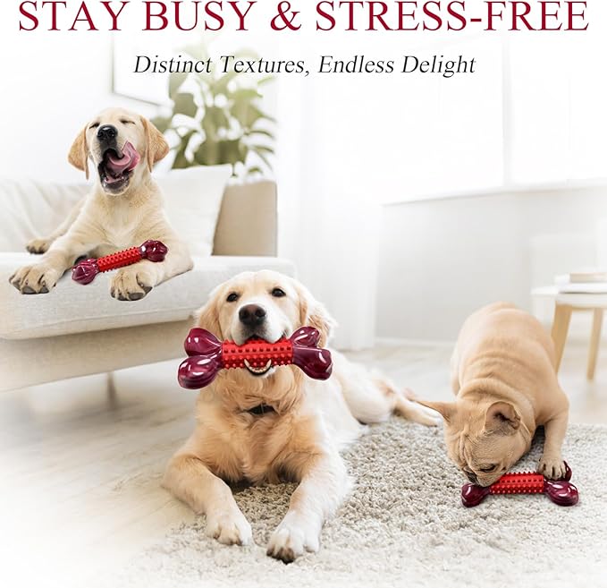 - MEETING THE INSTINCT NEEDS OF DOGS: dog chew toy will work for small medium and large breed dog puppies that weigh 20-80 pounds. Every dog likes bones, this heavy-duty dog toy bone for a paw-friendly grip so your love can quickly grab it and get a good chew going. There are few activities your canine companion loves more than chewing, the tough dog toys keep them mentally and physically stimulated.