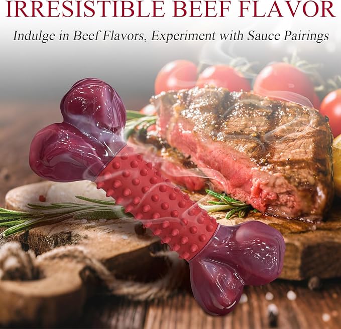 Apasiri Tough Dog Toys for Aggressive Chewers Beef Flavor: 8" Dog Chew Bone for Large Breed, Nylon & Rubber Chew Toy for Medium Large Dogs