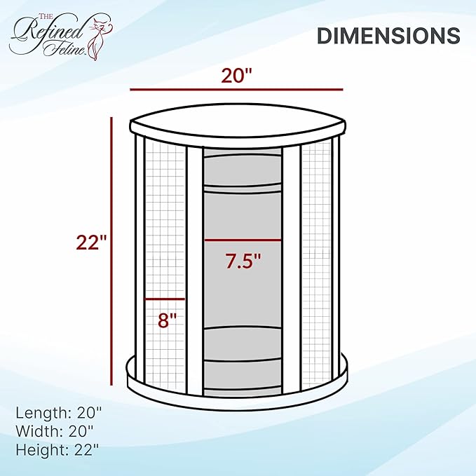 - 🐈 TOOLS AND INSTRUCTIONS INCLUDED. Assembly of this modern cat furniture takes about an hour. All of the required tools are included. Overall size: 20″ L x 20″ W x 22″ h.