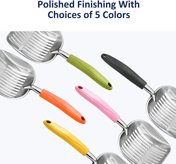 - [Functions]: The sharp edge helps to loosen clumps. The sifter area holds wet clumps and lets clean litter pass through easily. The long handle keeps you away from cat’s waste. It is designed to keep litter box clean and save you loads of cat litter.