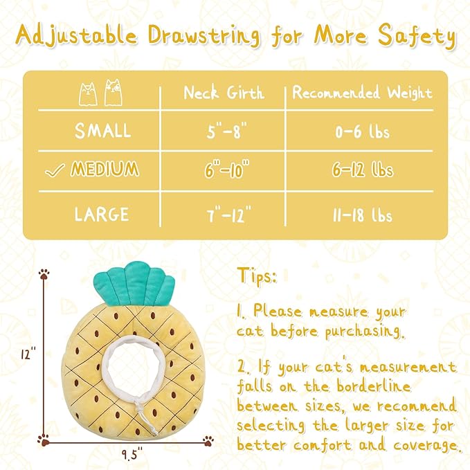 - 【AS AN ADORABLE PILLOW】 More than a cat recovery collar, it’s an adorable decoration for your lovely kitten. It also acts as a soft pillow when the cat lies down. Imagine your cat wearing it and looks like a pineapple, you both will be in a good mood all day.