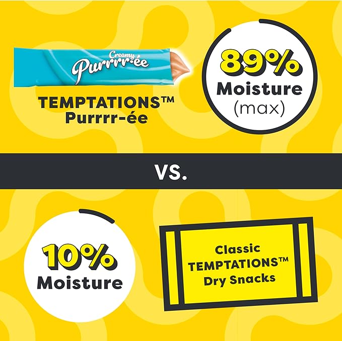 - Cats Lose Their Cool: Temptations Creamy Puree Wet Cat Treats deliver irresistible tuna flavor in a squeezable, creamy puree your cat will come running for