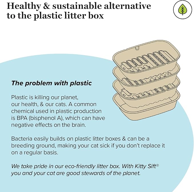 Kitty Sift (Set of 1 Litter Box & 5 Sifting Liners) Sustainable, Clean, Sifting, Disposable Cat Litter Box Kit - Large, 6-Set Kit