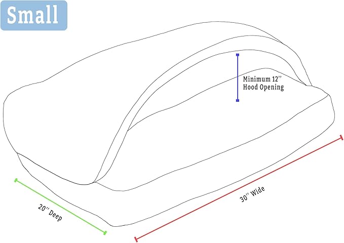 - Sizing: This dog bed measures 20" deep by 30" wide with a 4" sidewall, and about 8" total height including the hood, perfect for small breeds. Includes a removable plastic tube to keep the hood open