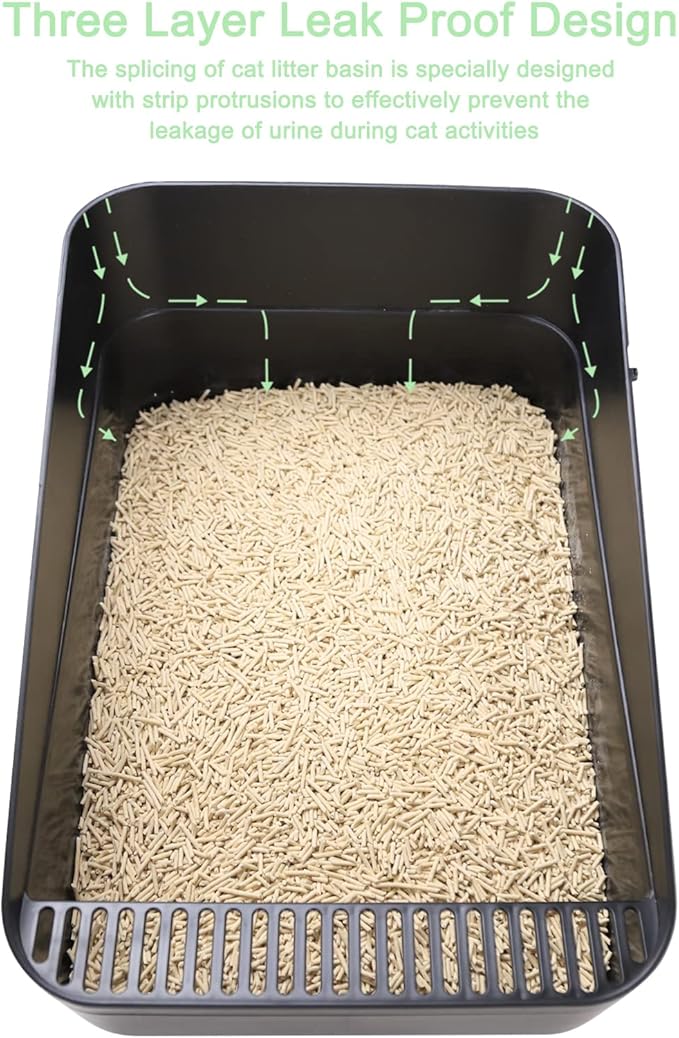 - High Quality Material: Cat litter box is made of high quality food grade ABS material, BPA and phthalate free, odorless, durable and a guarantee of your pet's health. It can provide a comfortable and safe living environment for cats to ensure their healthy growth and give you a cleaner home environment.