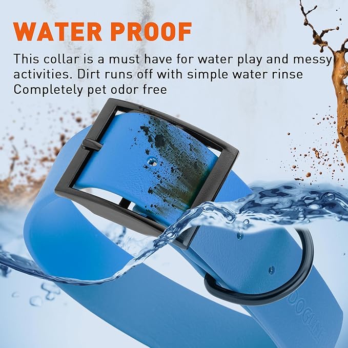 • Free Your Dog to romp in puddles and retrieve from lakes with the Dogline Biothane Waterproof Dog Collar. This water-repellent collar stays dry and odor-free, without shrinking or losing flexibility.