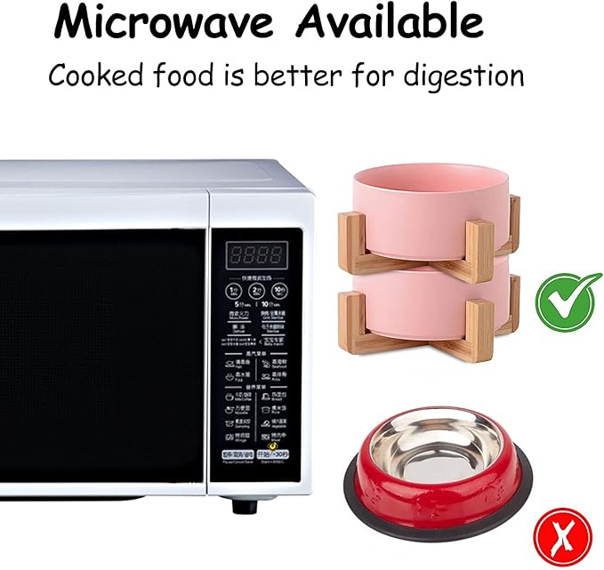 - DISHWASHER MICROWAVE SAFE - Ceramic pet bowls is made of Porcelain Ceramic with wood frame to keep from sliding on the floor. Ceramic cat dog bowls are high temperature ceramic, non-toxic durable. and the cat dog food water bowls conveniently dishwasherable so it can be easily cleaned. No Fuss.